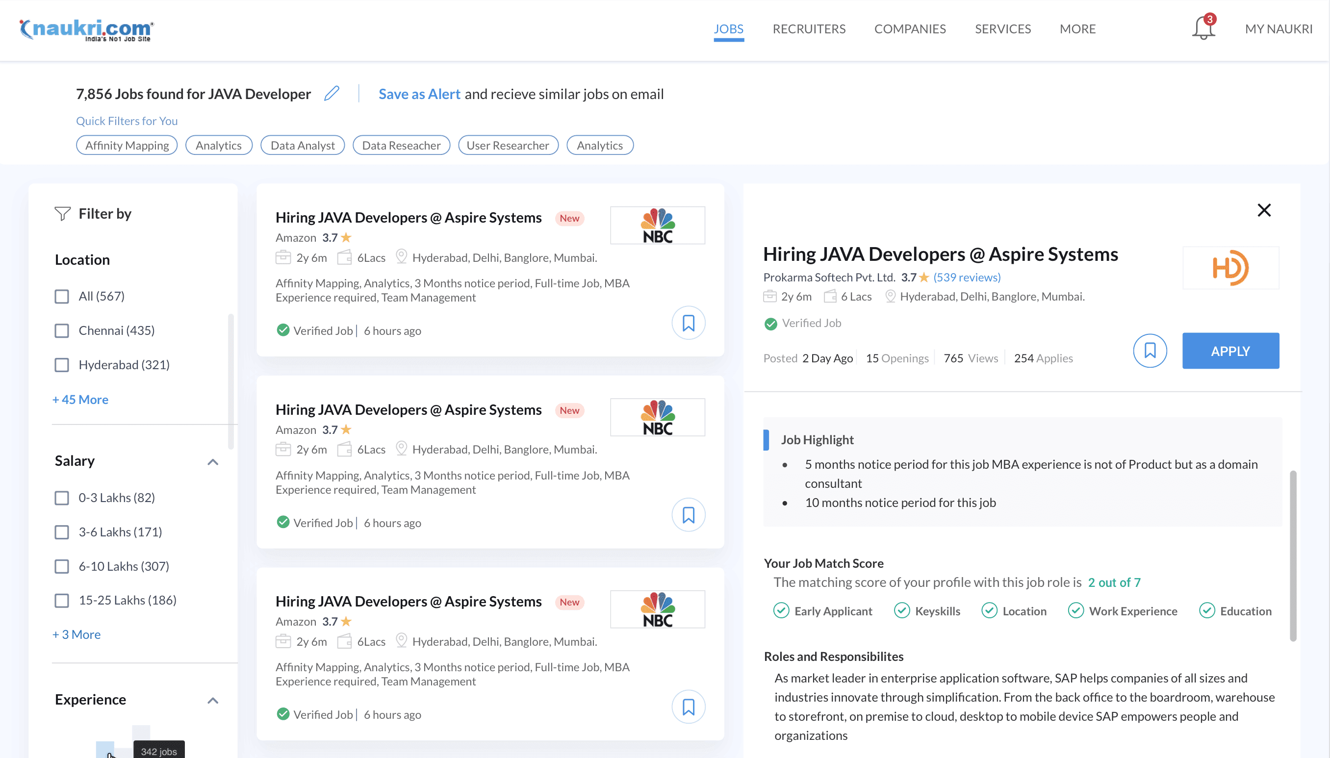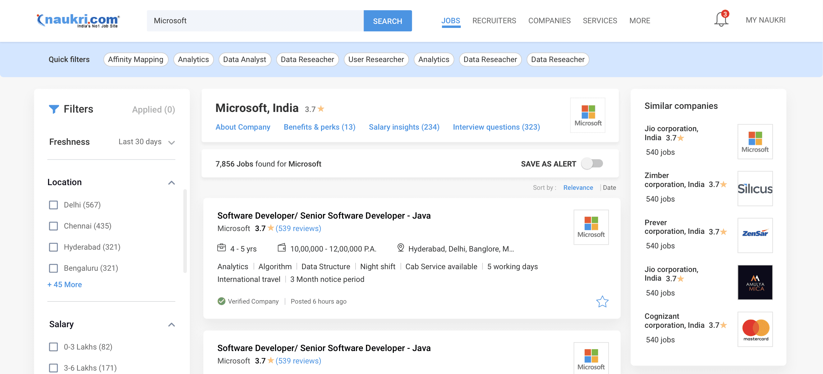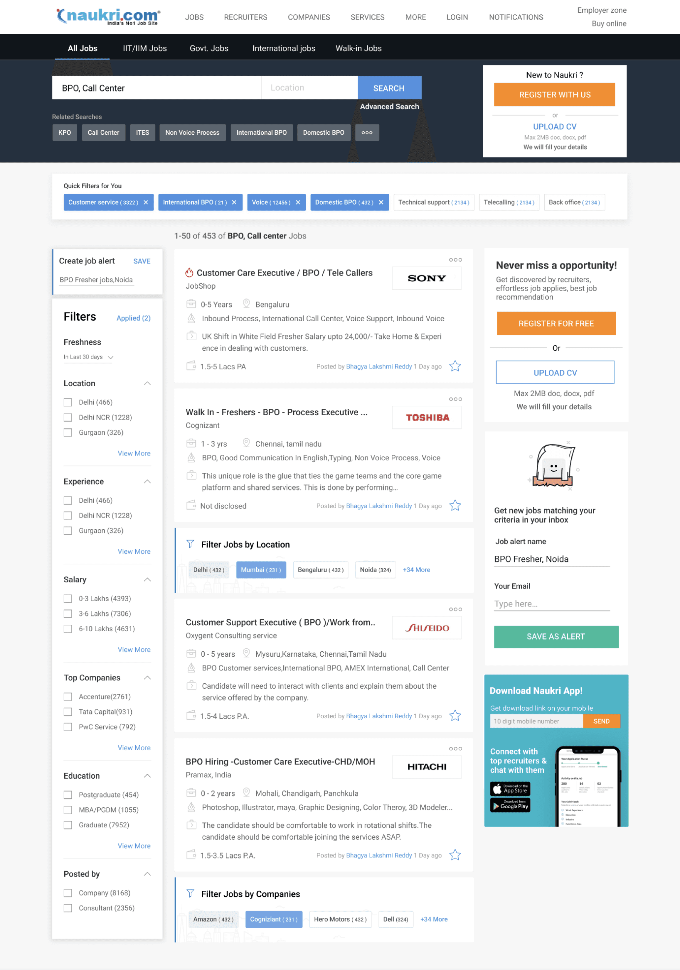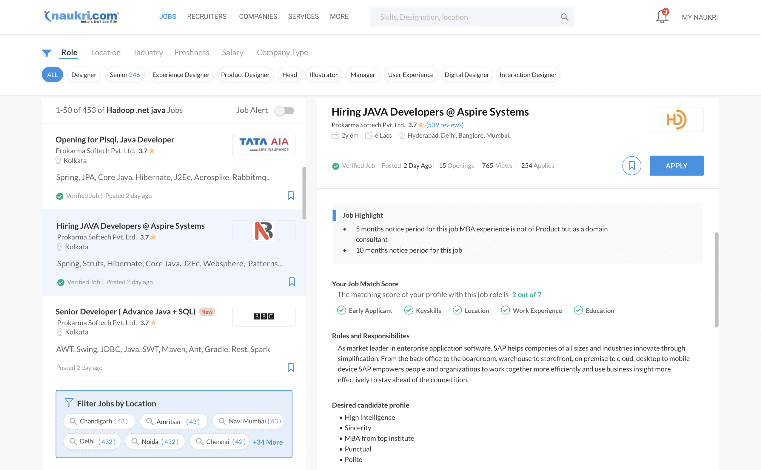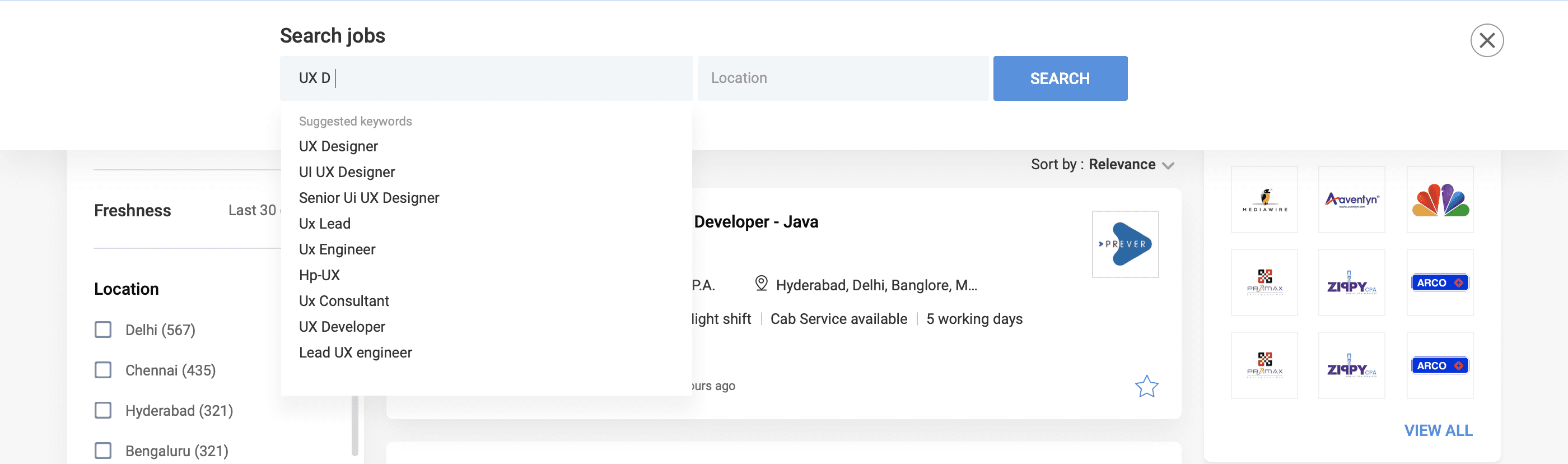 Naukri.com is an Indian employment website operating in India and the Middle East. In terms of user statistics, Naukri.com has a total of 21 million visits. The website ranks 2nd in the Jobs and Career and Employment category in India. i worked as UX designer in Naukri in job seekers division