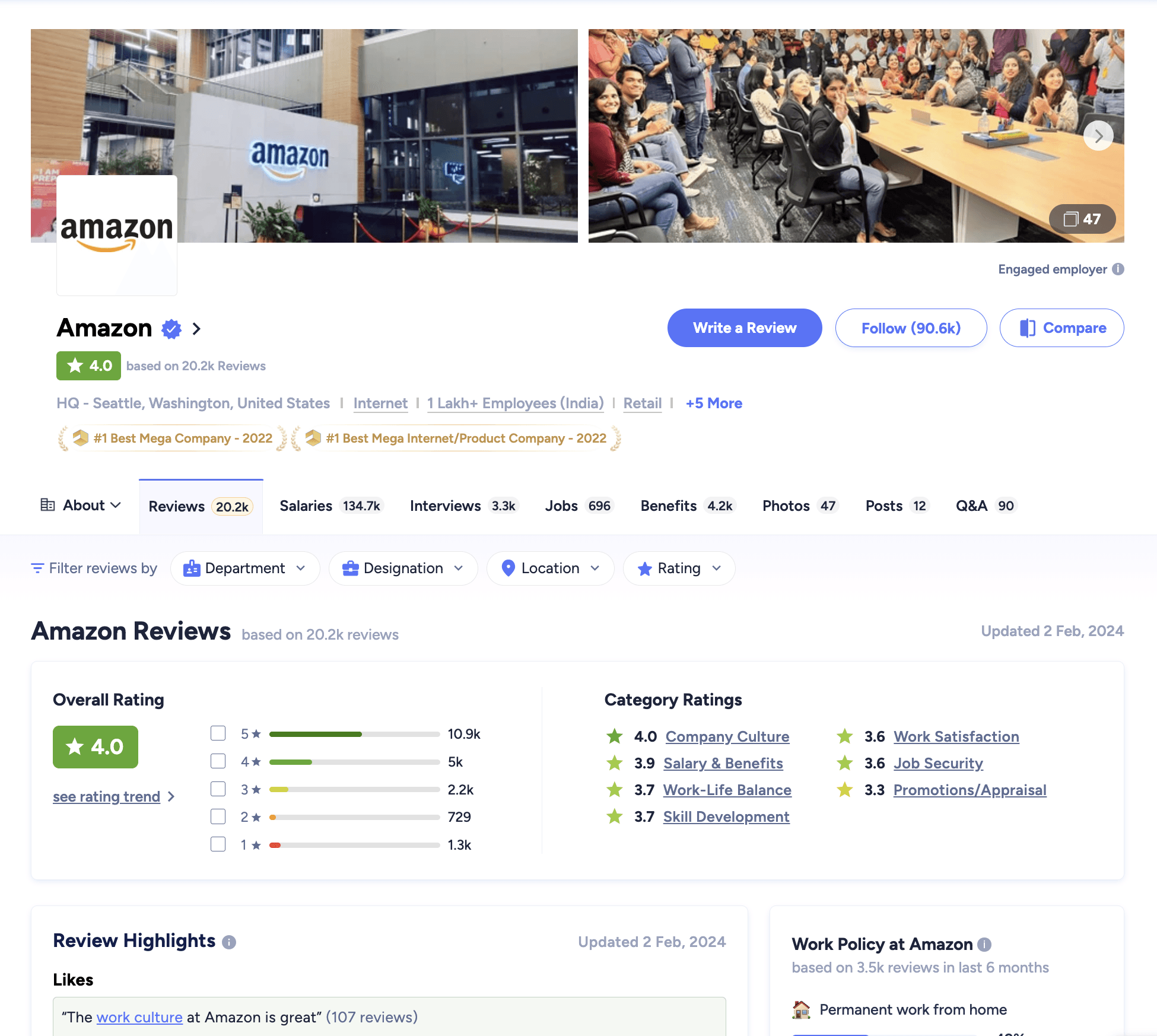 The company acquired a salary and company review platform (like Glass door), and wanted to leverage and display relevant data in the SRP.