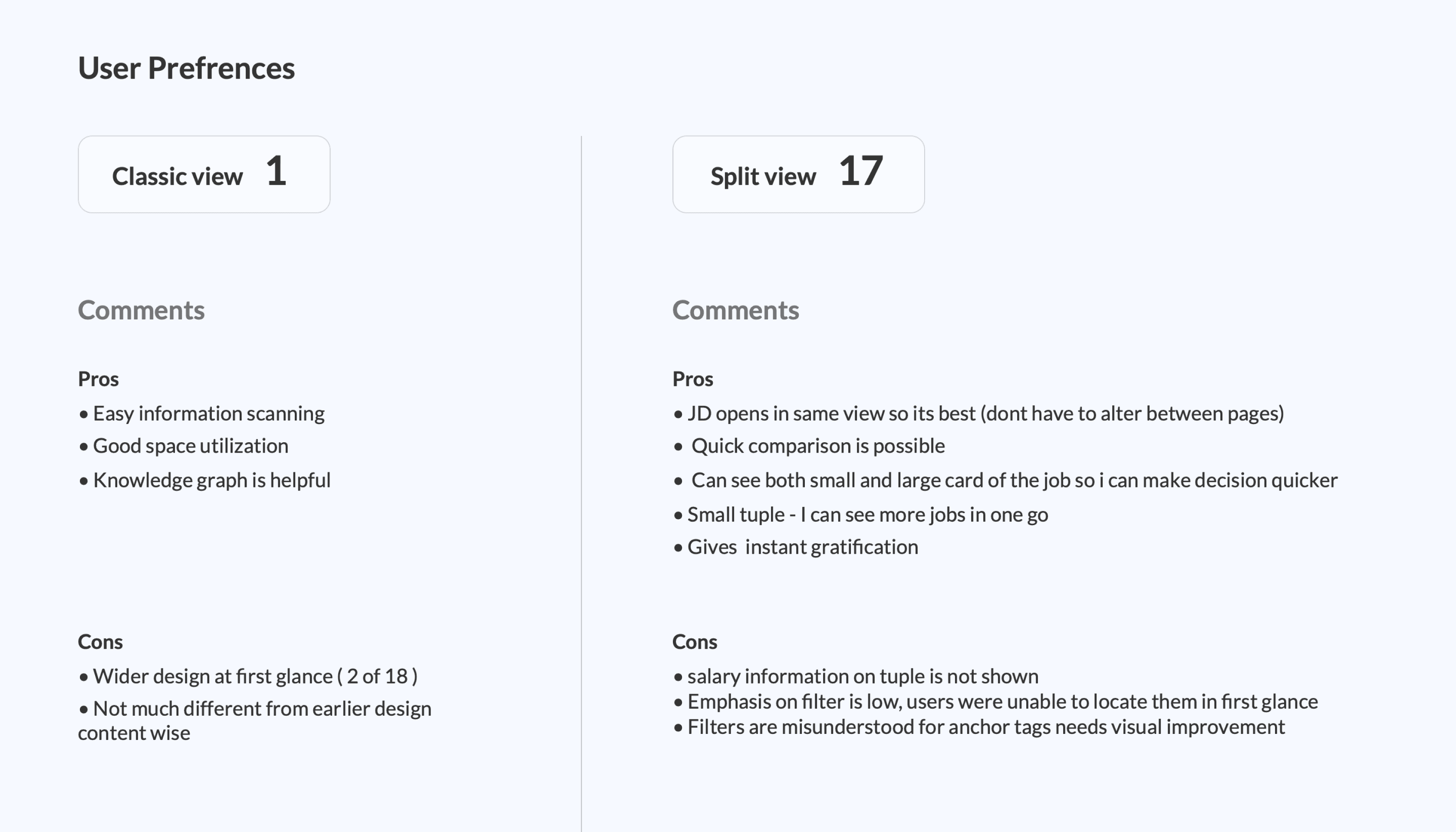 "The primary focus was to optimize and redesign the new Search result page to best serve the extensive user base of IT professionals on job platform, as they are largest demographic according to database”