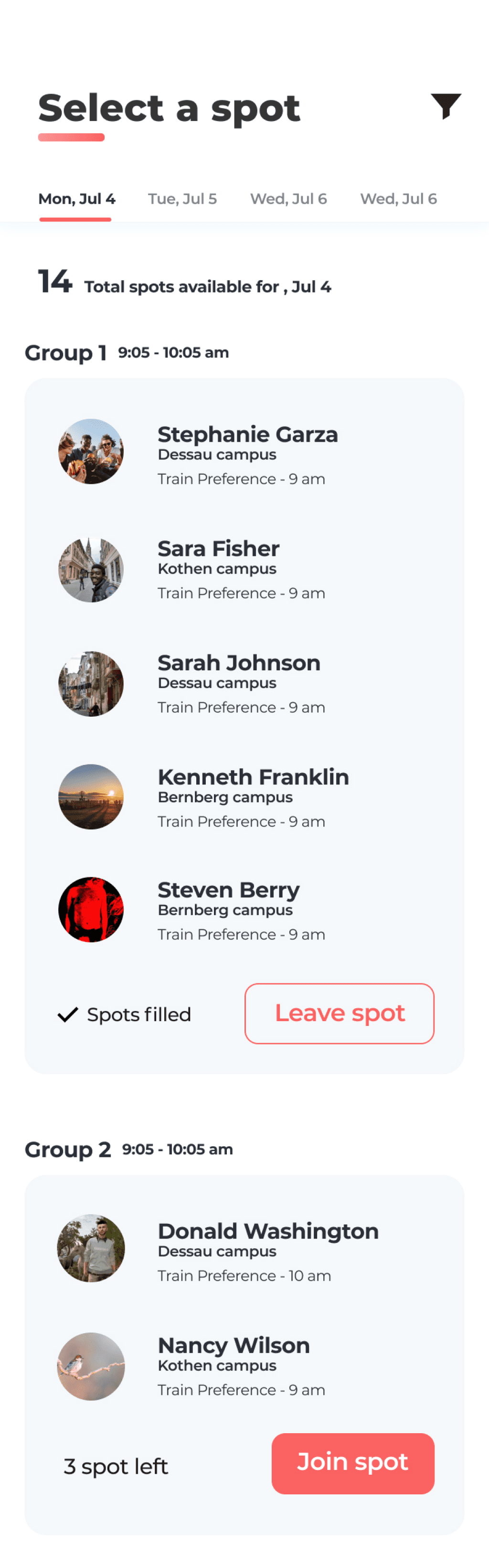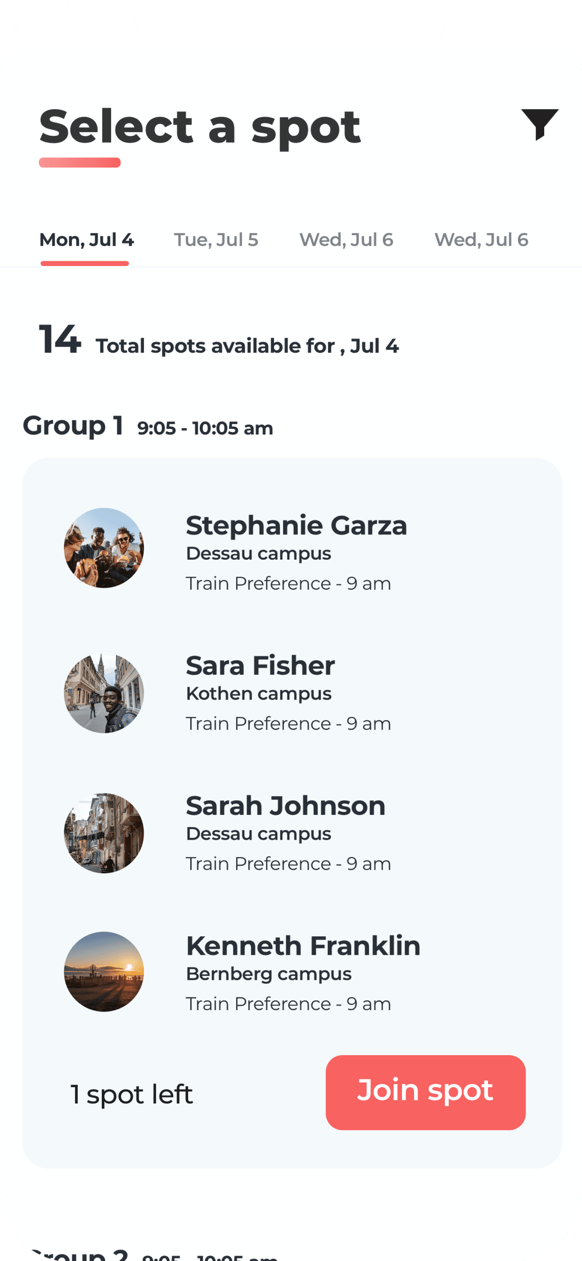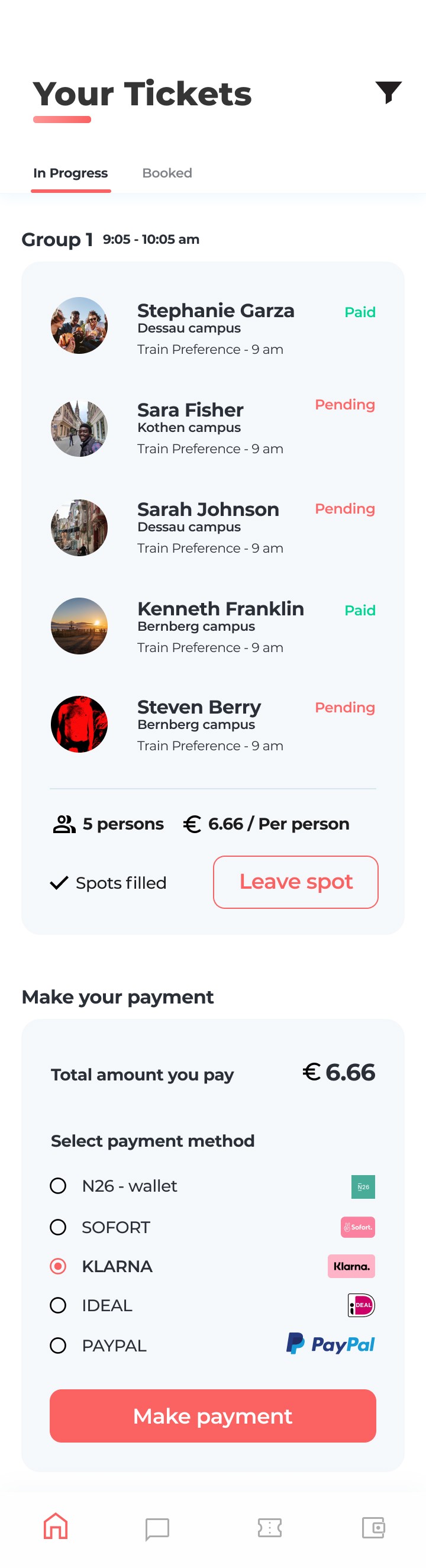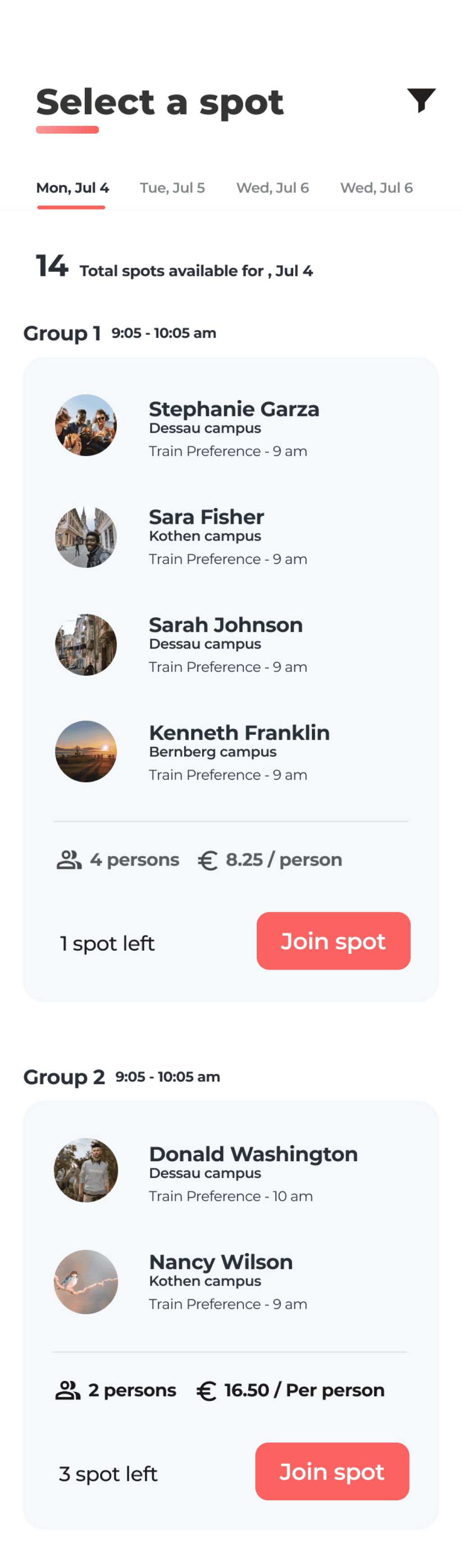 Based on the time preference the user can join a group spot & pay accordingly via different payment options.