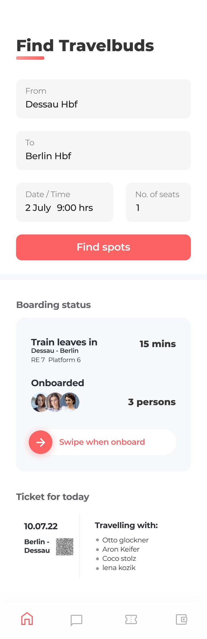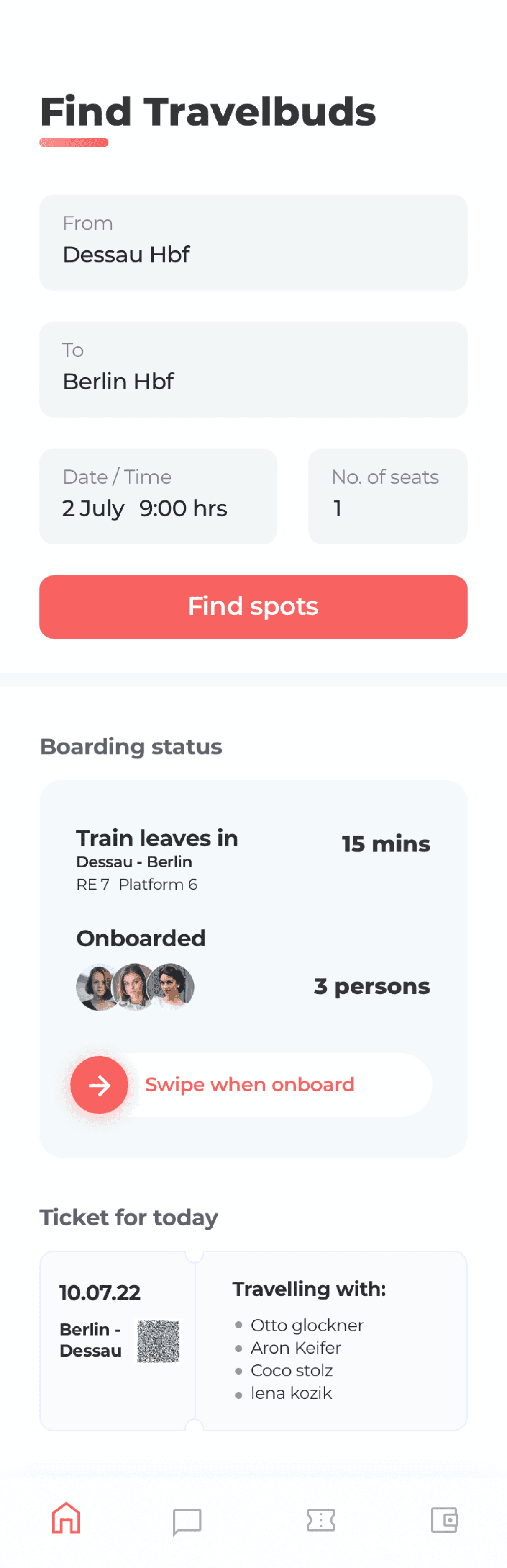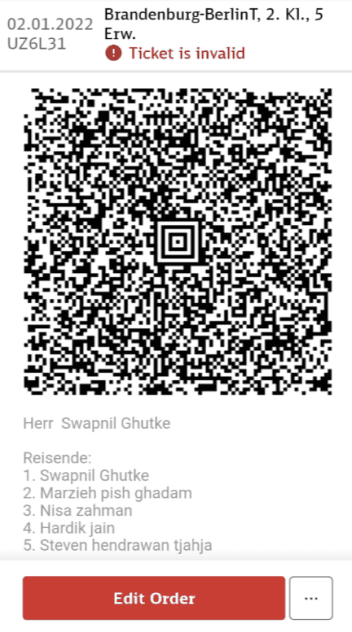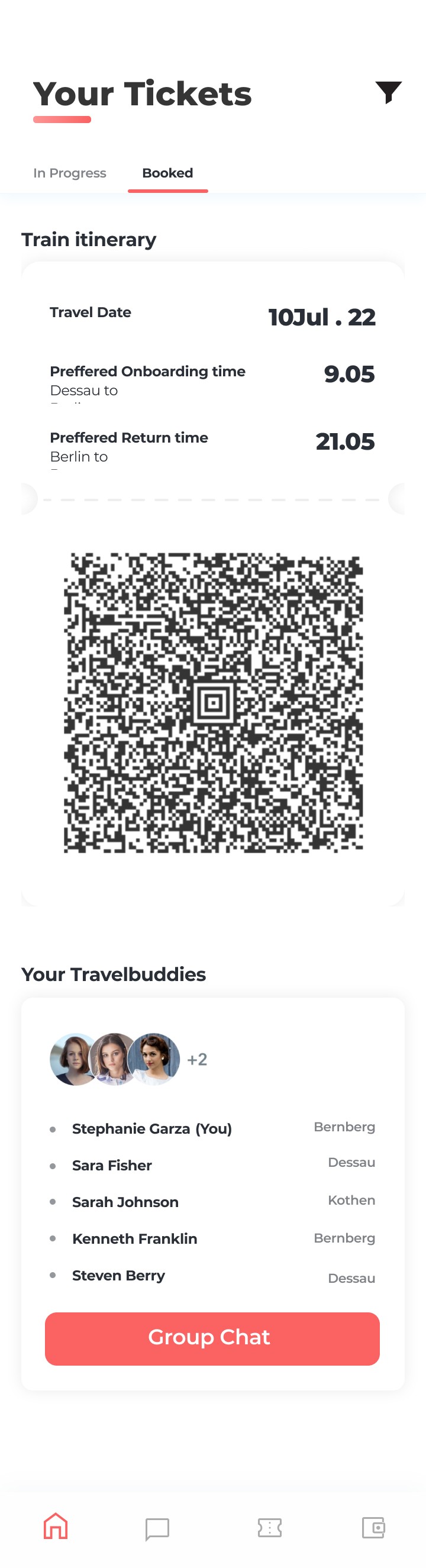When everyone pays their part of the ticket, the ticket is booked and QR code is generated with preferred onboarding time and returning time