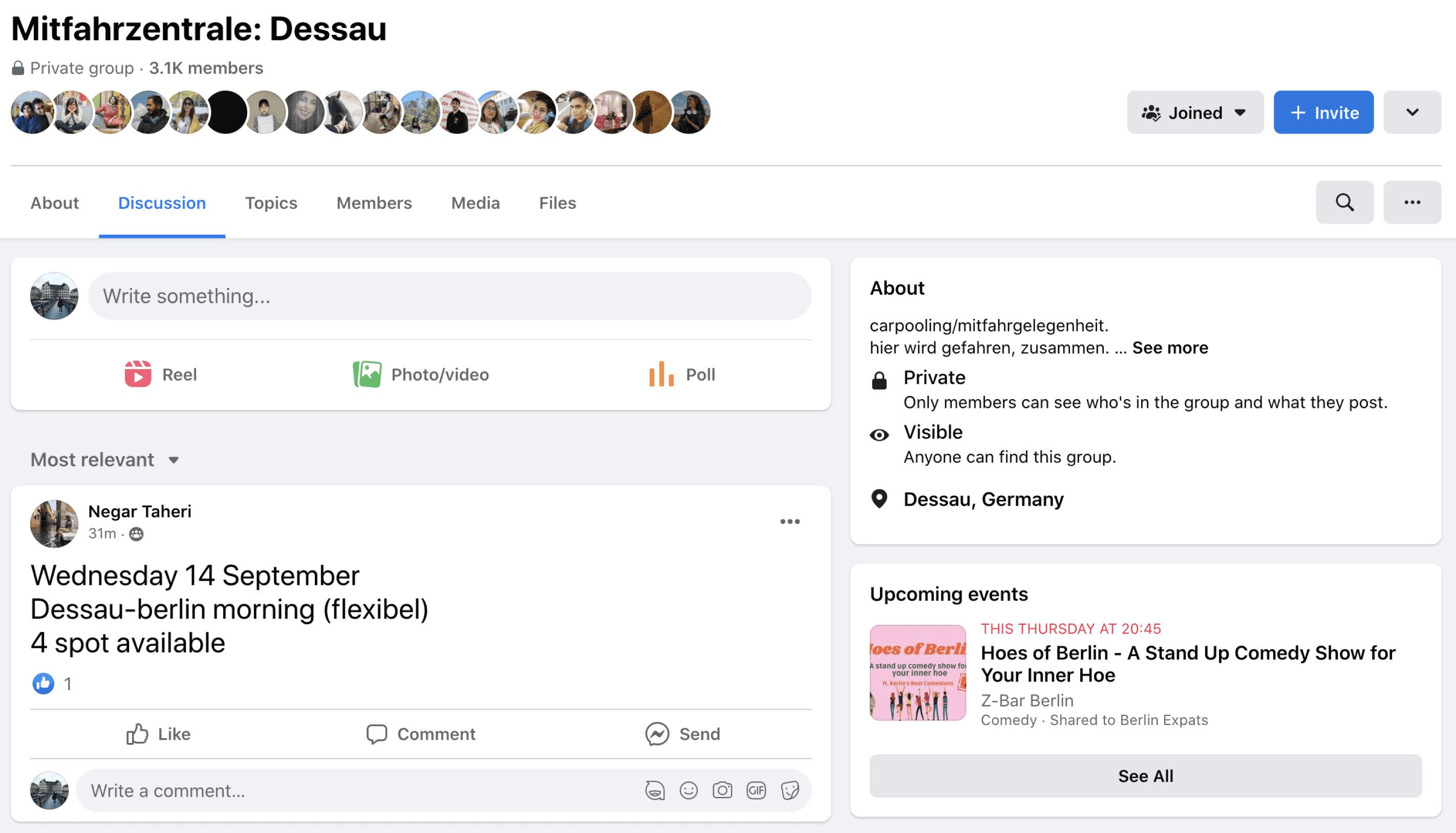 Current facebook group for travel coordination and booking