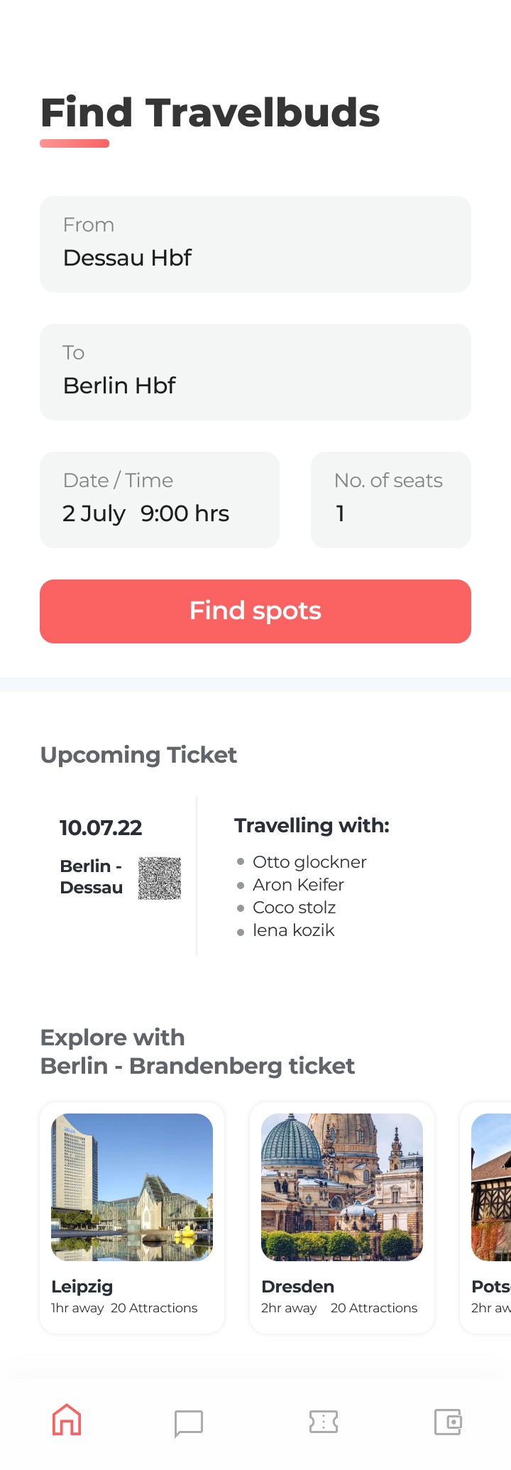 Once the users have boarded the train, the home page also shows the places that they could explore with the Berlin Brandenberg tickets